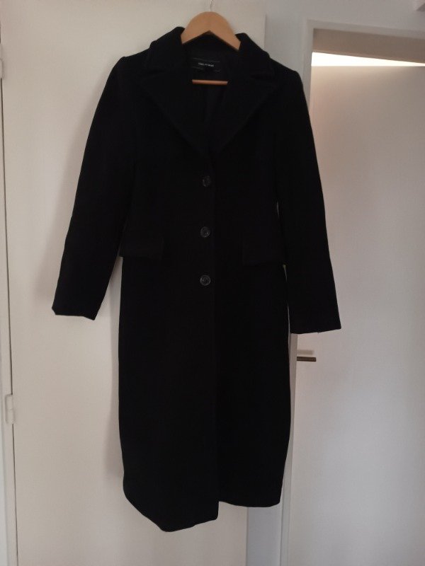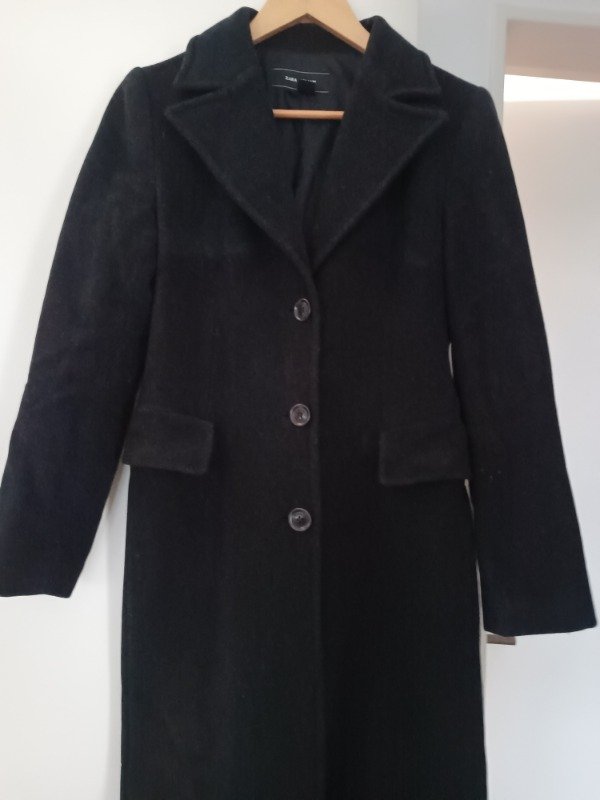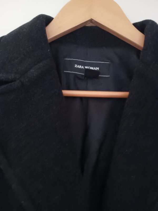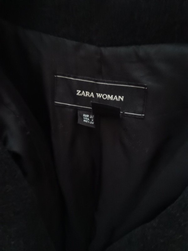 Tapado largo marca Zara, en color negro, totalmente forrado, con bolsillos. Muy abrigado