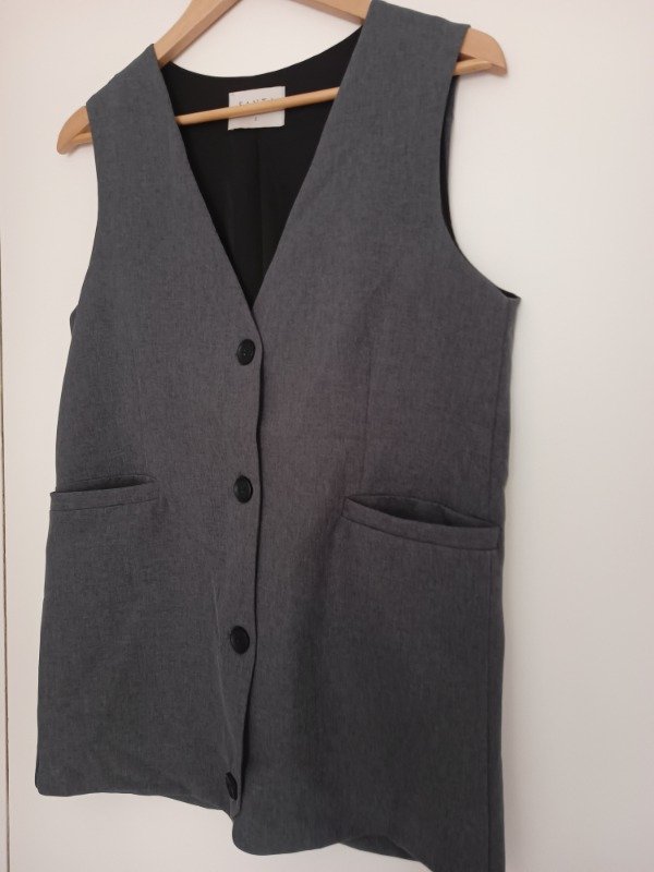 Chaleco marca Santa Bohemia, en color gris, totalmente forrado