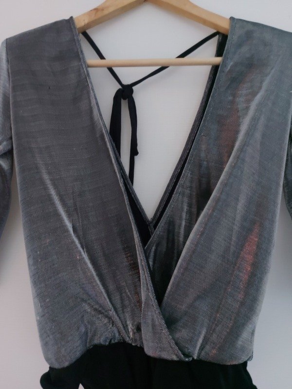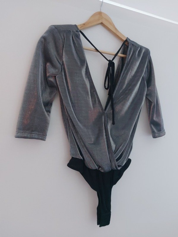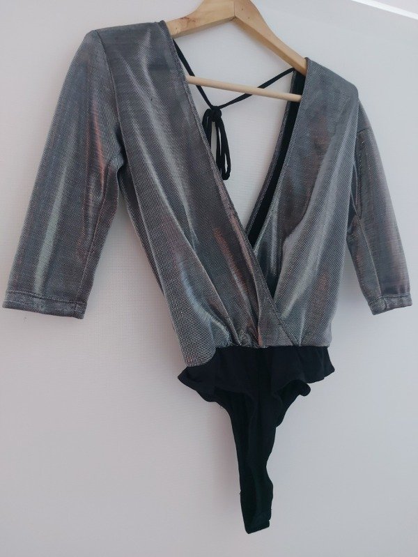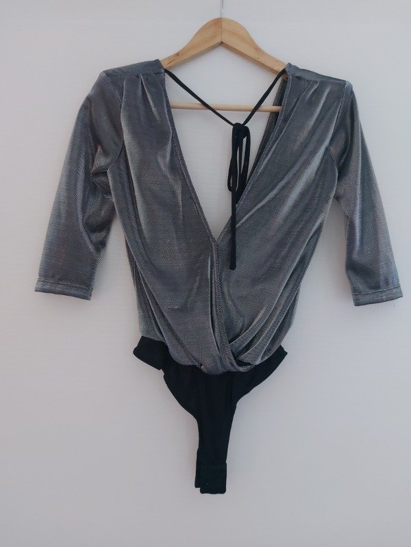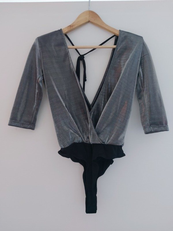 Body marca Shibinda en color plata y negro, de mangas 3/4
