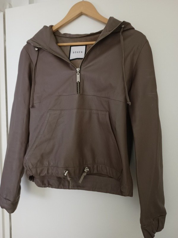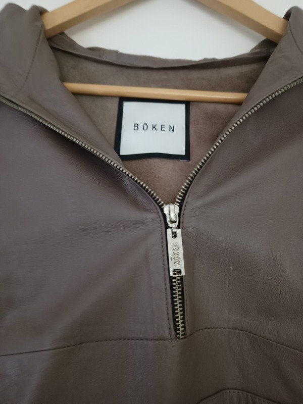 Buzo de cuero marca Boken, en color vision, con bolsillos y capucha
