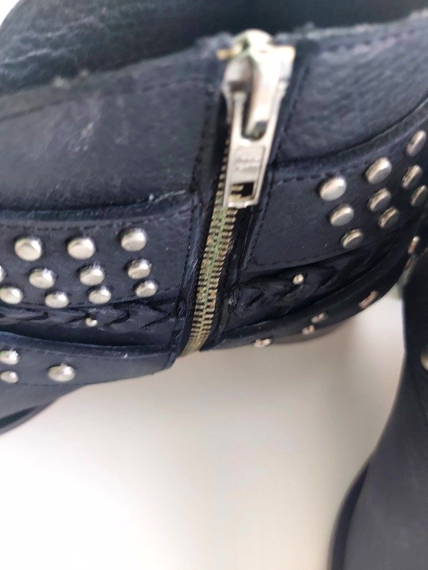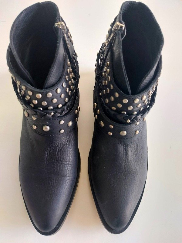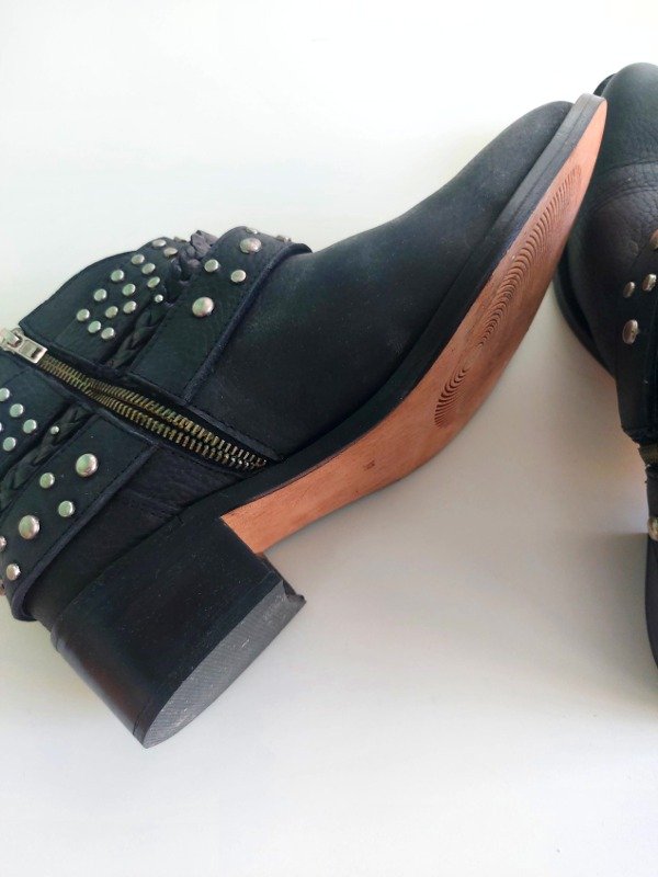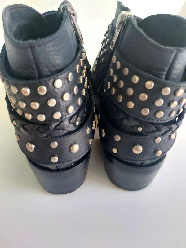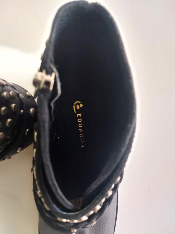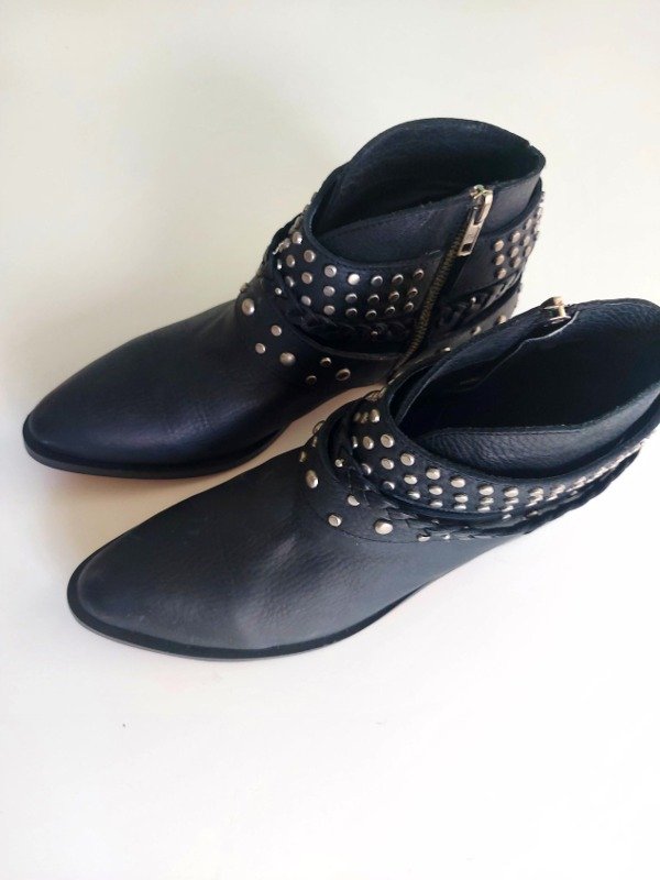 Botas de cuero marca Eduardo con detalle de tachas y cierre lateral. Taco bajo. Nuevas!