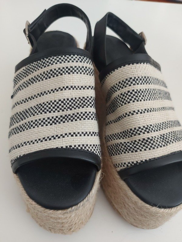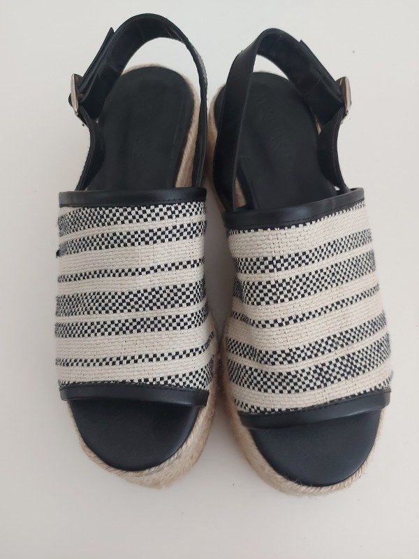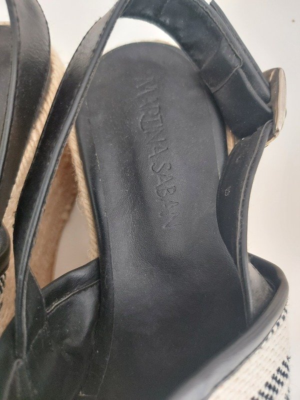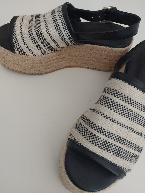 Sandalias marca Martina Saban en color blanco y negro, con plataforma