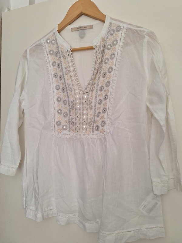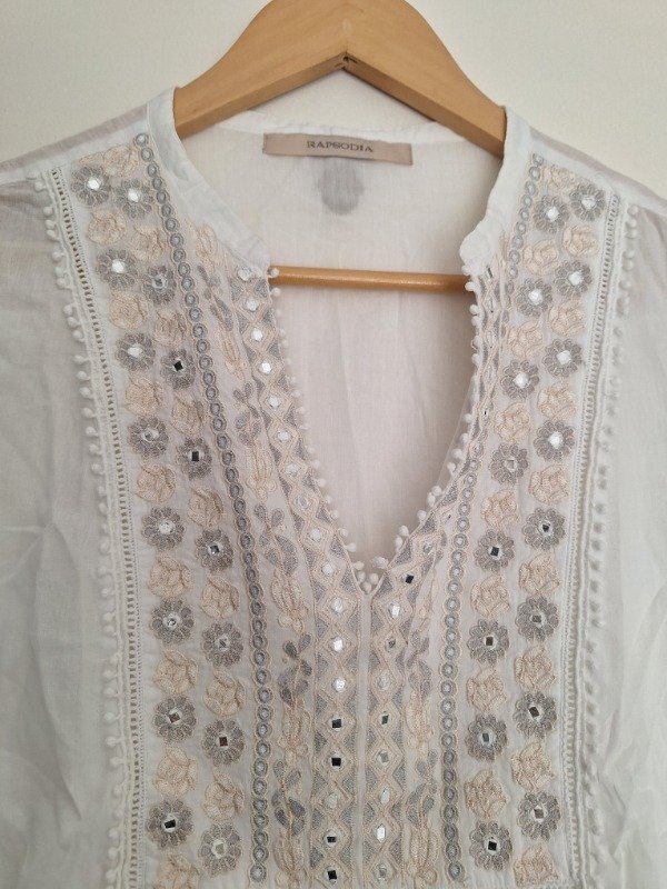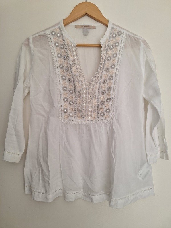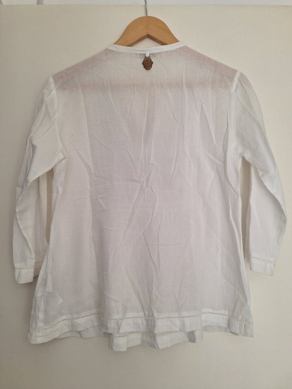 Camisa marca Rapsodia, en color blanco, con mangas 3/4