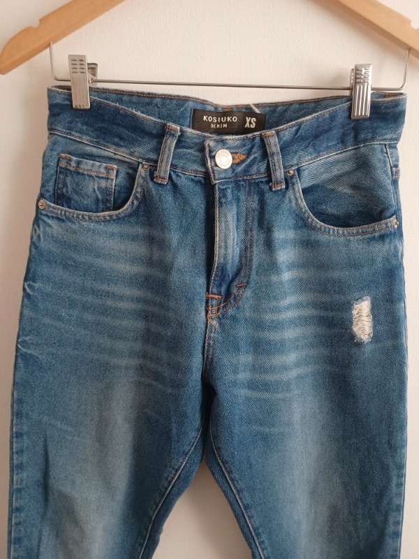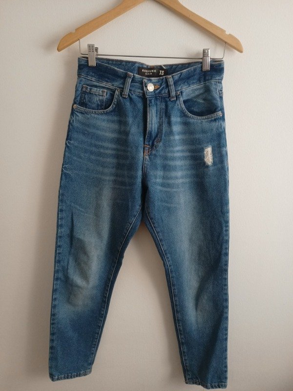 Jean marca Kosiuko, tiro alto, con detalle de desgaste. Super canchero