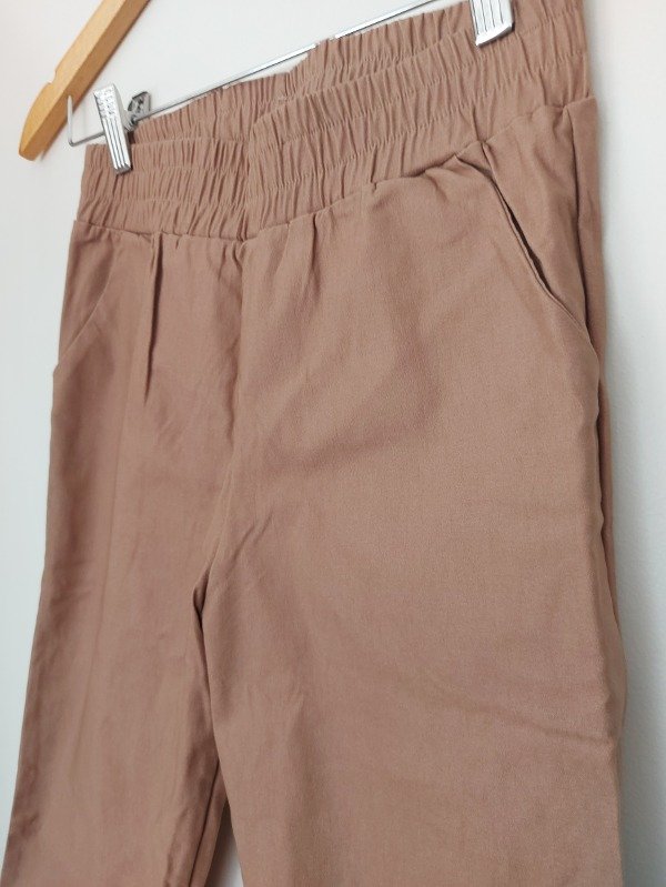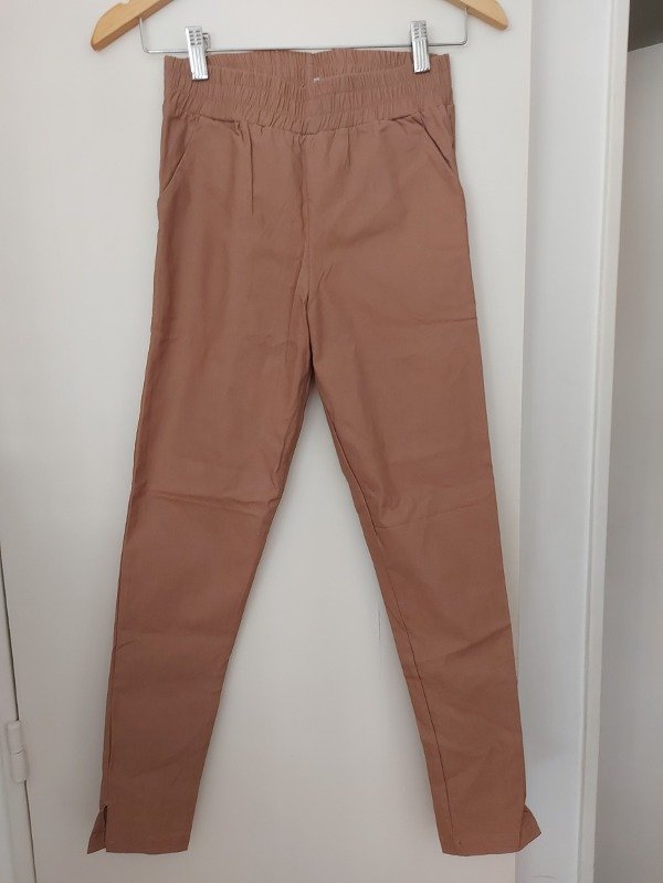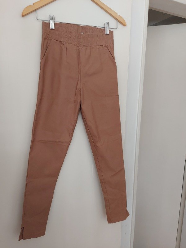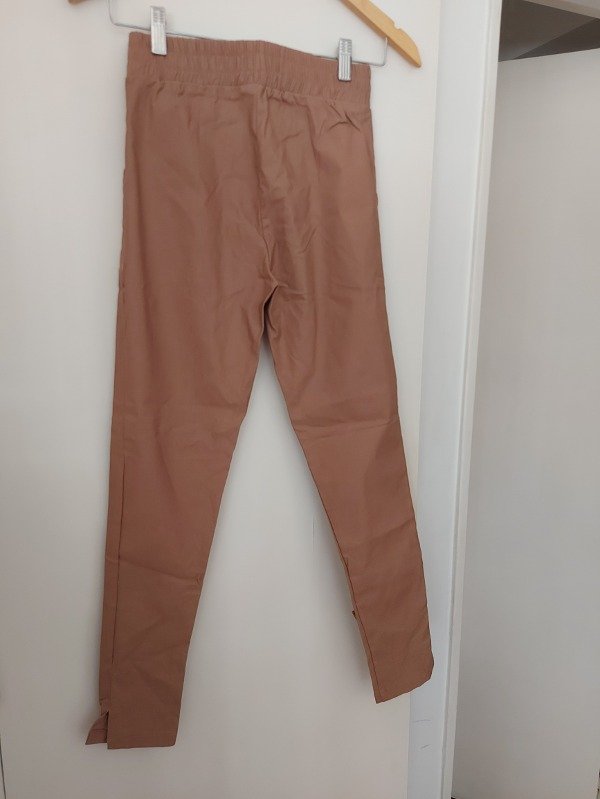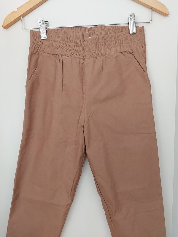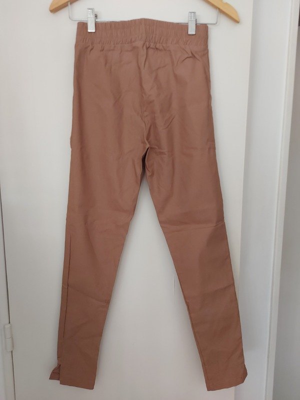 Leggings de bengalina, en color beige, con spandex, y bolsillos lateraels