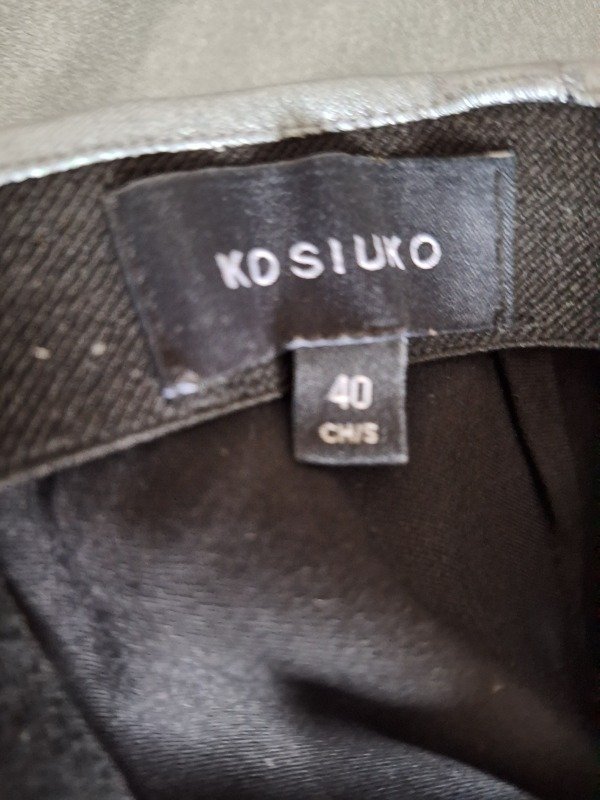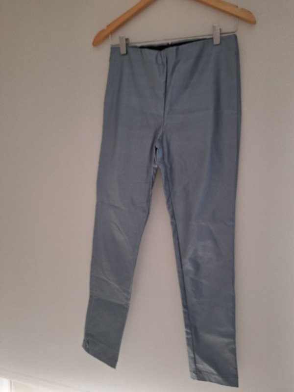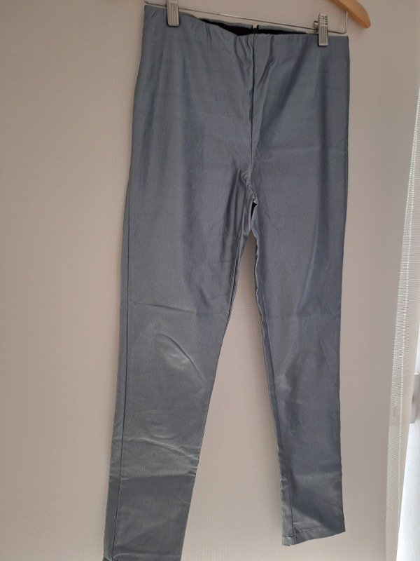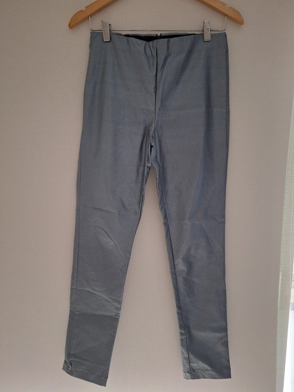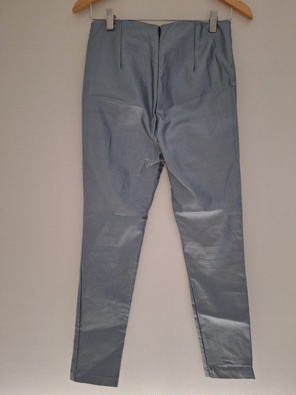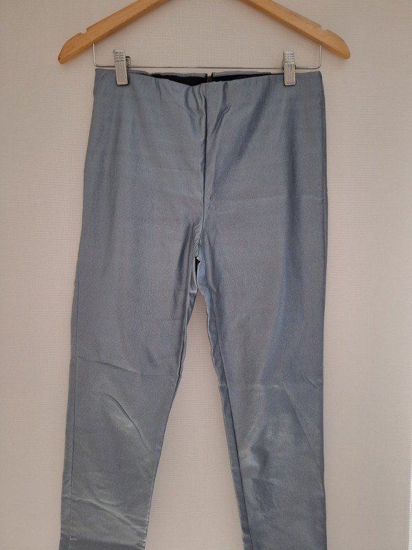 Leggings marca Kosiuko, metalizadas en gris, con cierre invisible al costado.