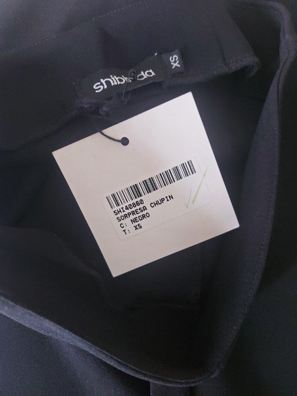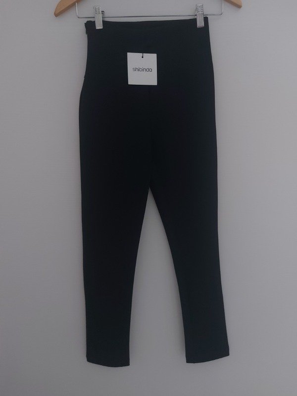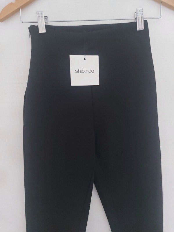 Leggings marca Shibinda, en color negro, tiro alto, chupin, cierre invisible lateral. Posee spandex