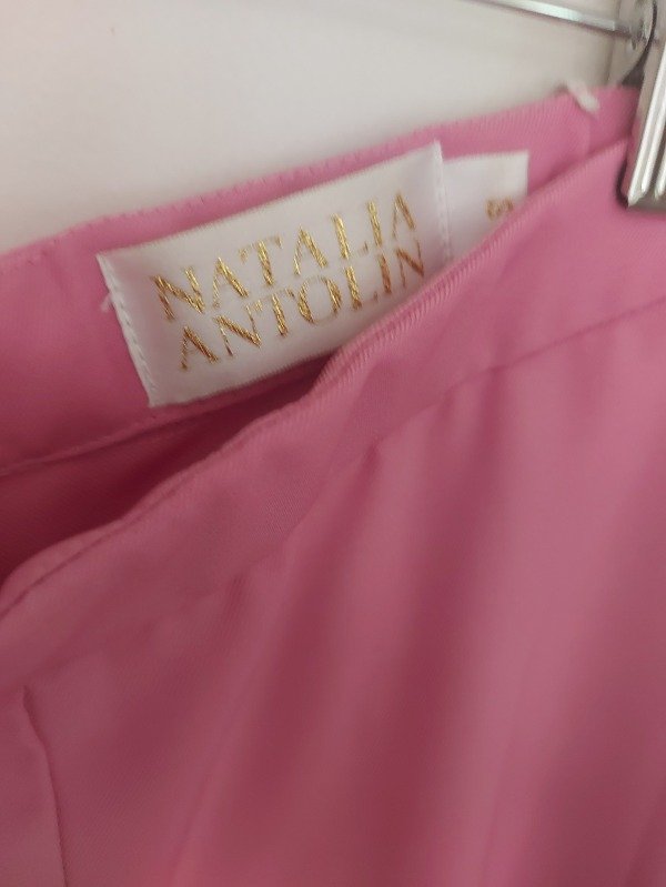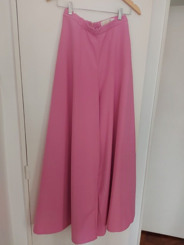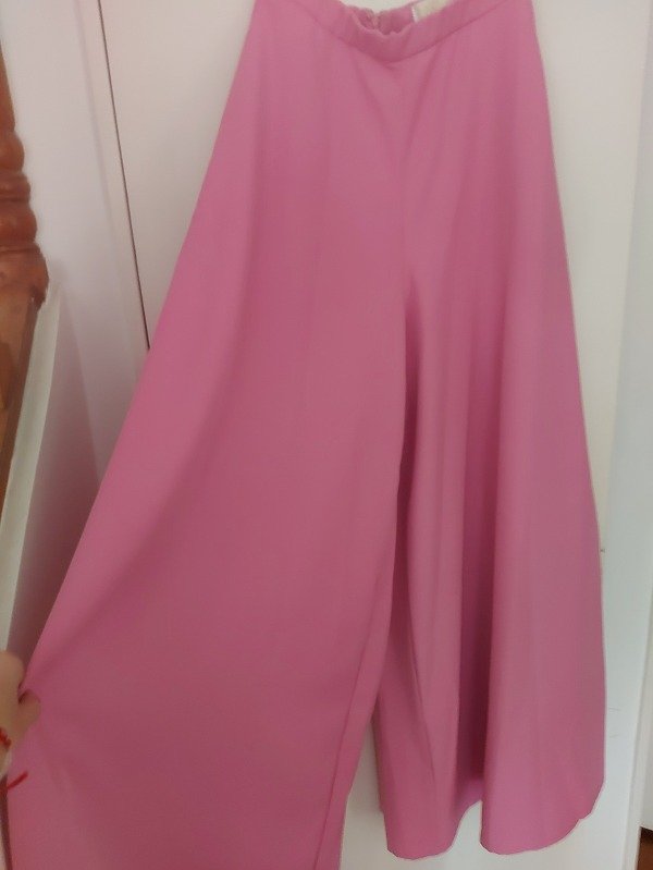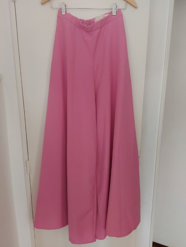 Pantalon palazzo marca Natalia Antolin, en color rosa, tiro alto, super ancho, con bolsillos laterales, y cierre invisible atrás. Excelente caida