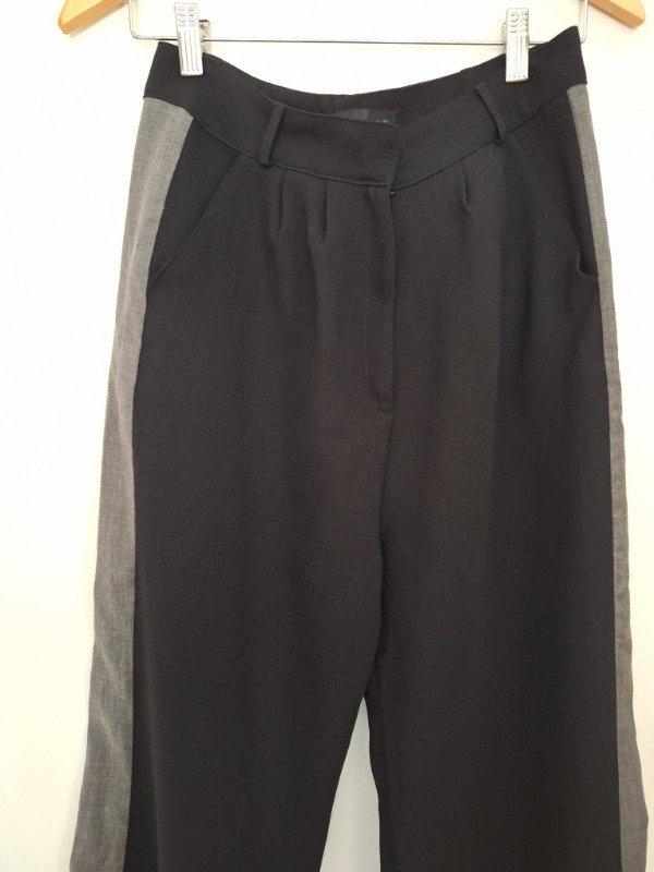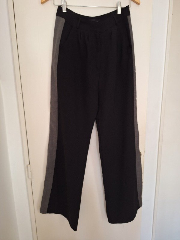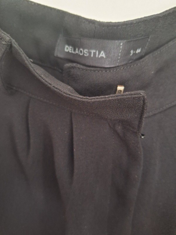 Pantalon de vestir amplio, marca Delaostia, en negro con guarda lateral. Posee bolsillos laterales.
