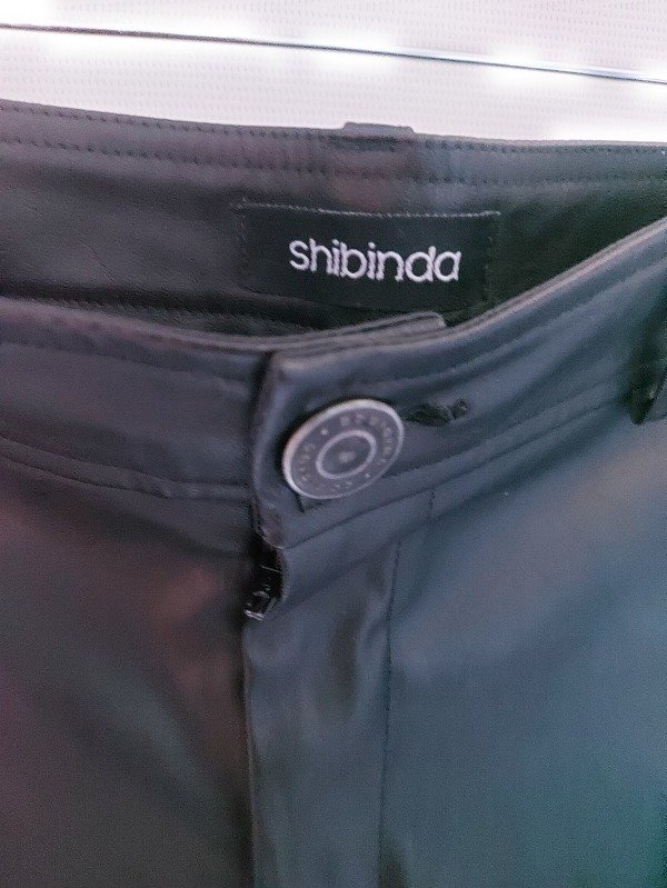 Pantalon engomado marca Shibinda, en color negro, tiro alto