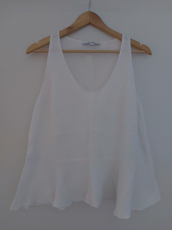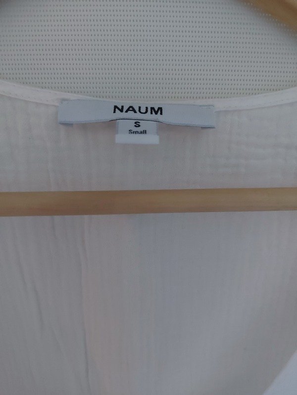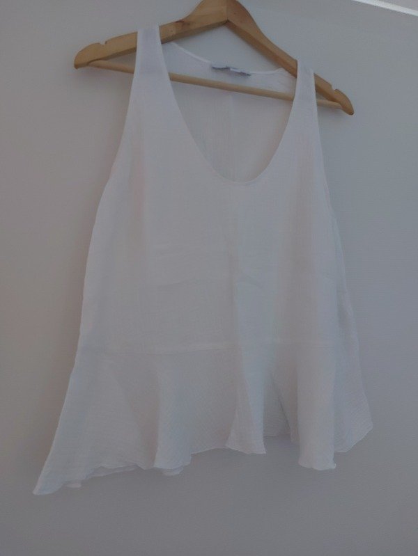 Musculosa marca Naum, amplia, en color blanco, estilo bambula