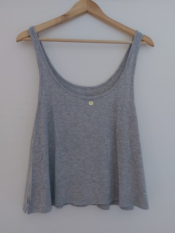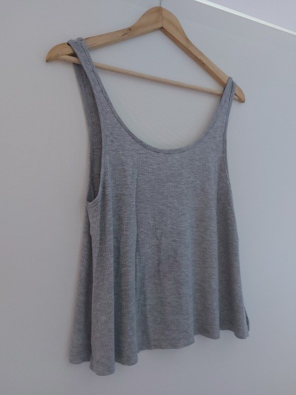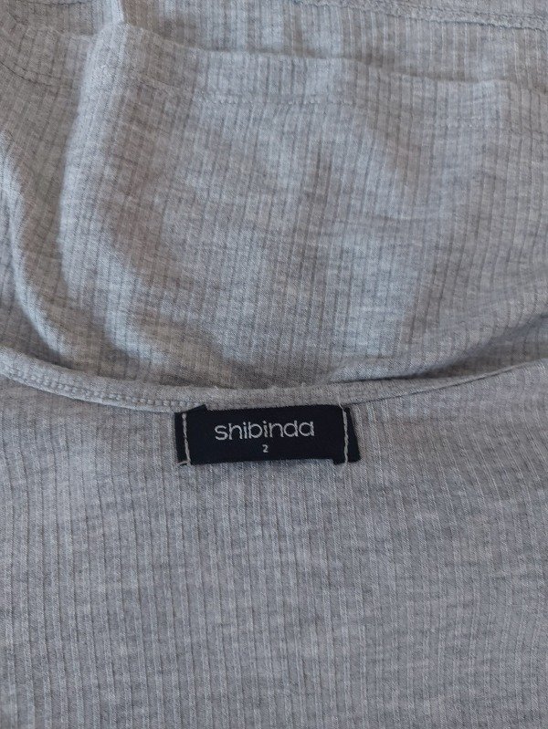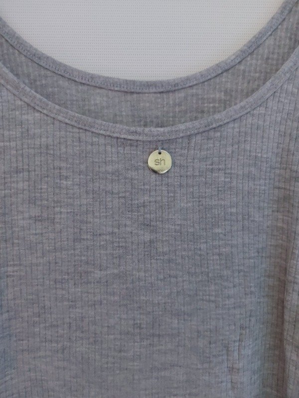 Musculosa marca Shibinda, amplia, en color gris, con spandex
