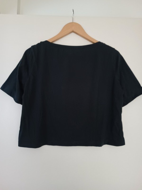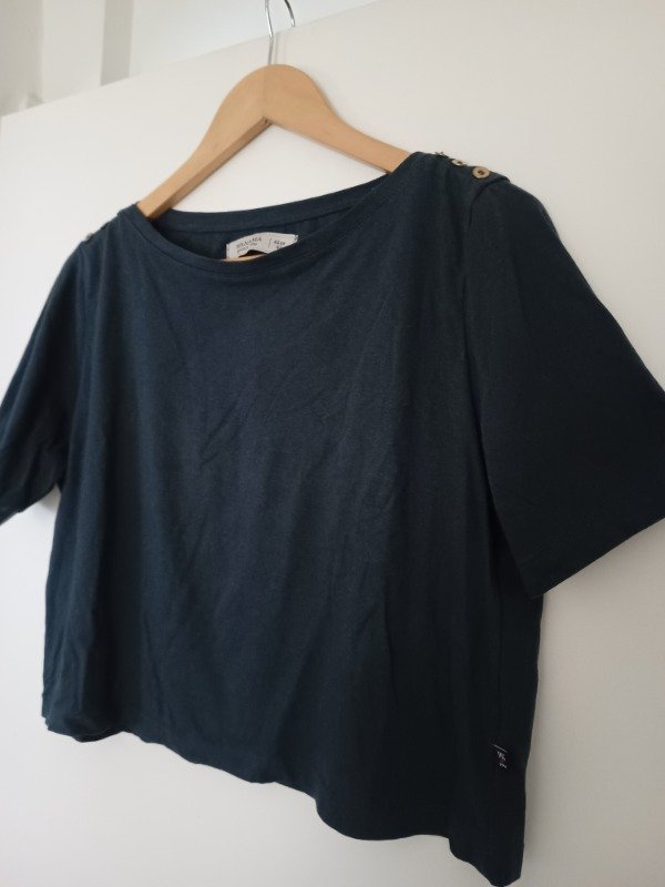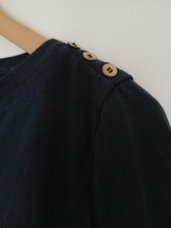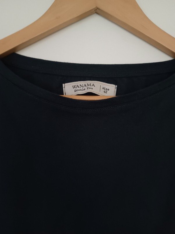 Remera marca Wanama, amplia en color negro, con detalle de botones en hombros