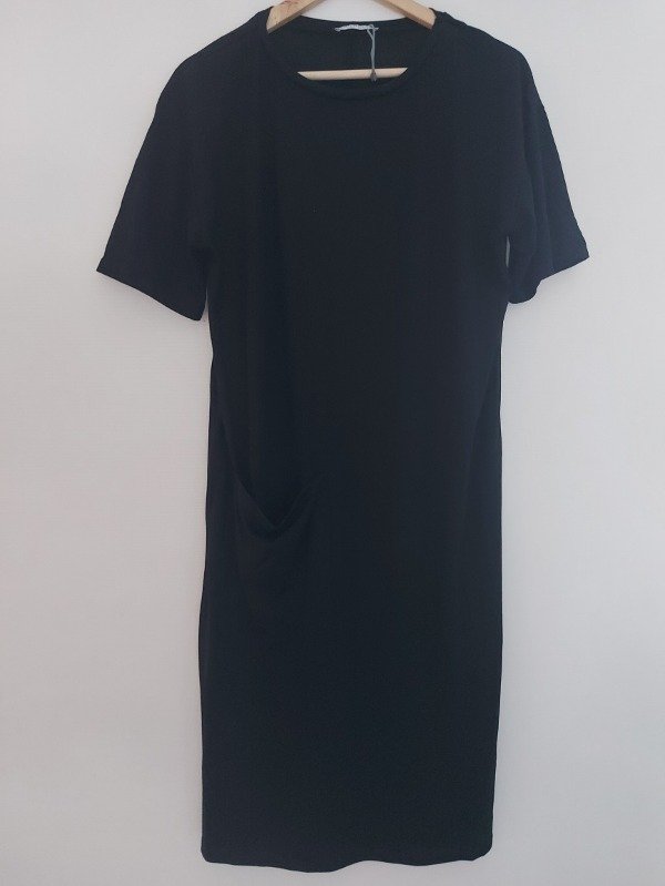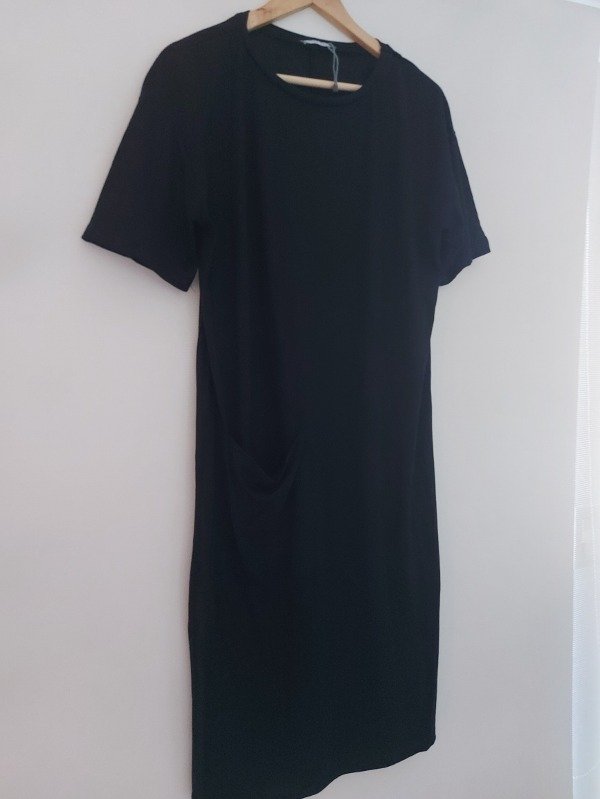 Remeron marca Zara, tipo vestido, en color negro, con un bolsillo al frente, de largo medio.