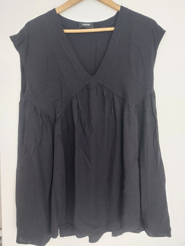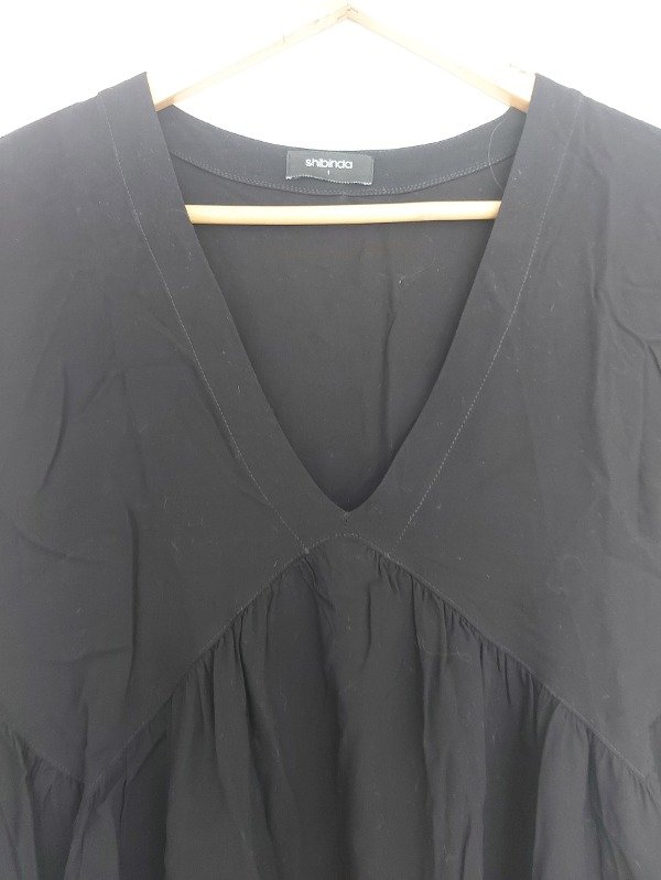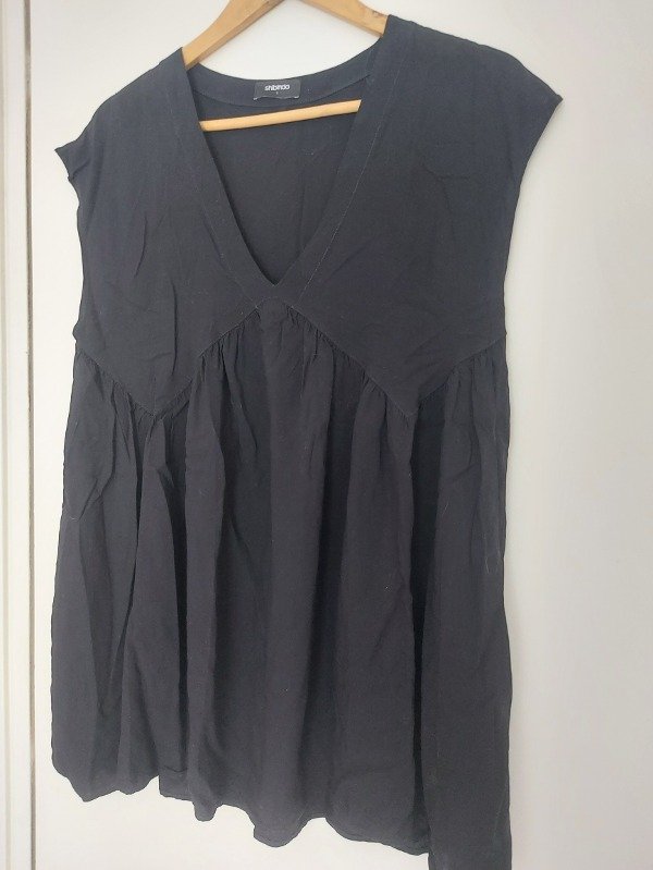 Vestido corto marca Shibinda, en color negro, amplio, escote en V
