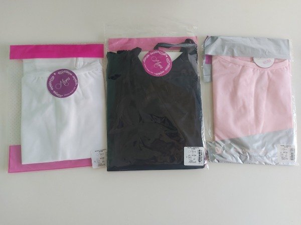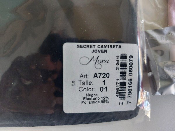 Camisetas marca Mora, en negro, rosa y blanco, con spandex. Precio por cada una. Disponible blanca y rosa.