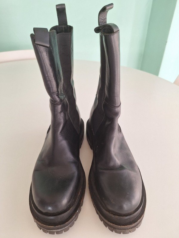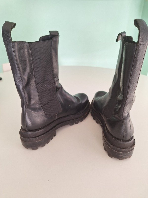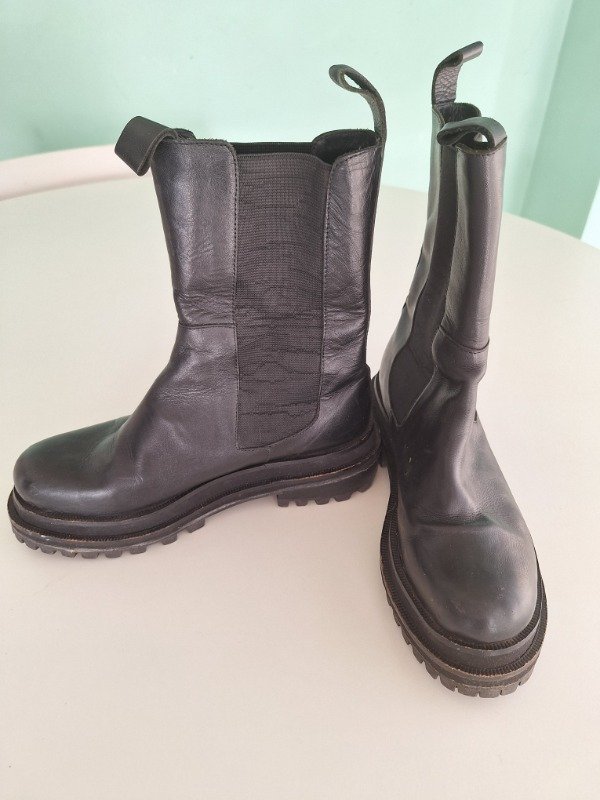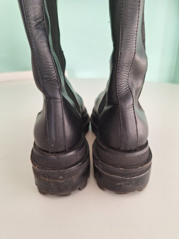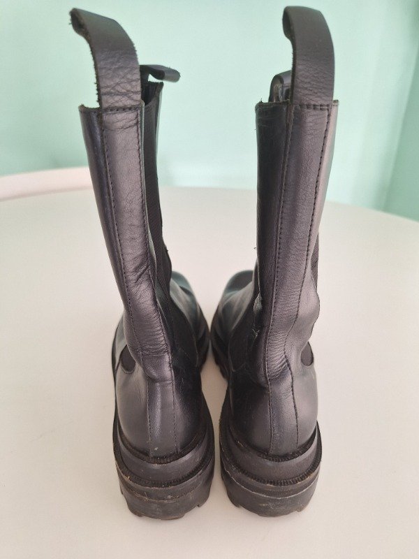 Borcegos de cuero marca Rakhi, en color negro, con elastico lateral