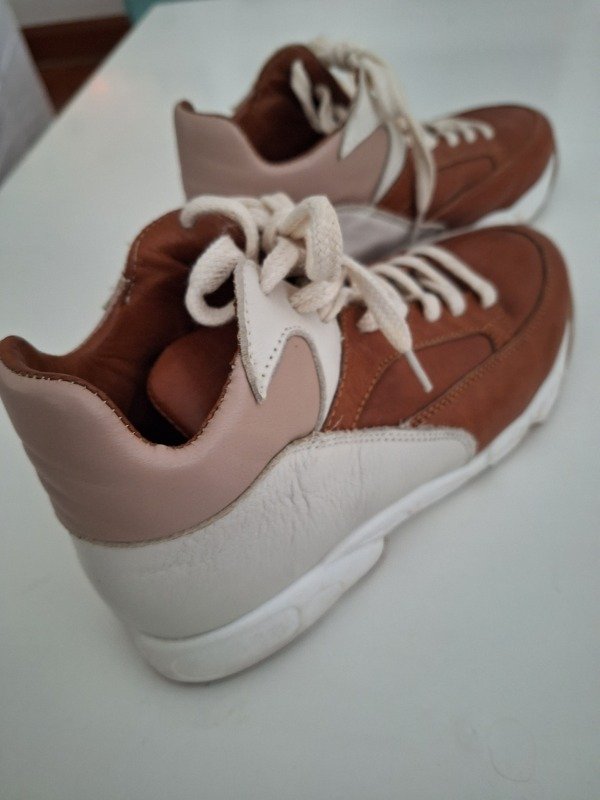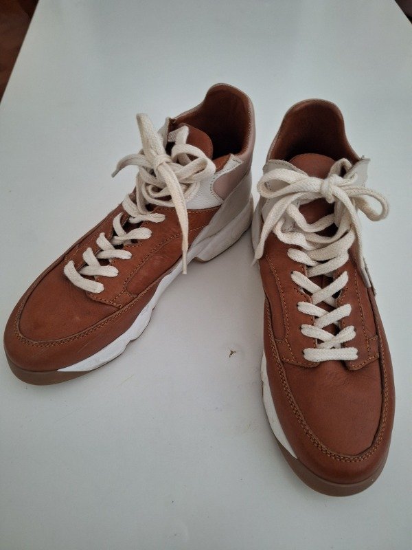 Sneakers marca Margie Franzini, de cuero en tonos tierra
