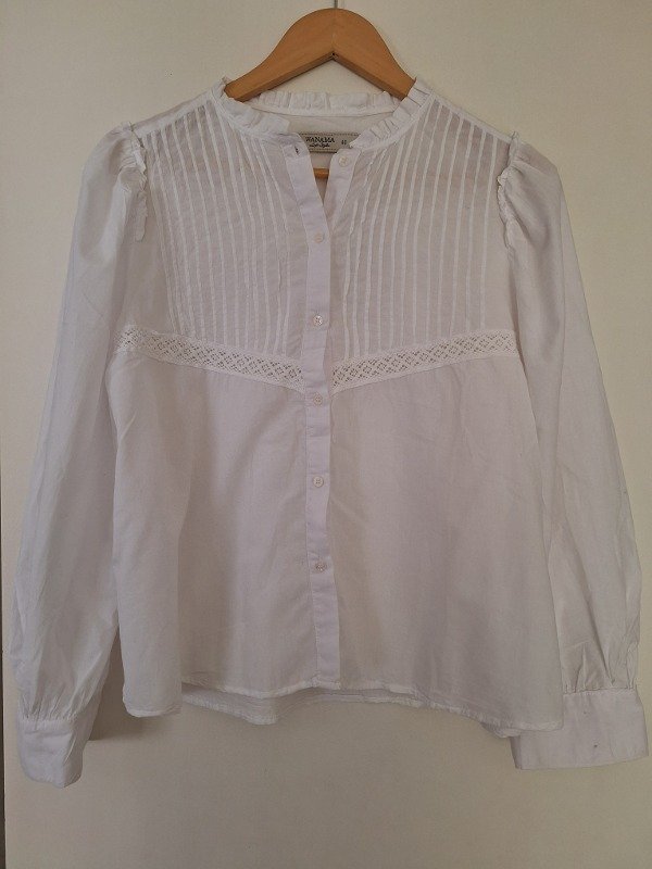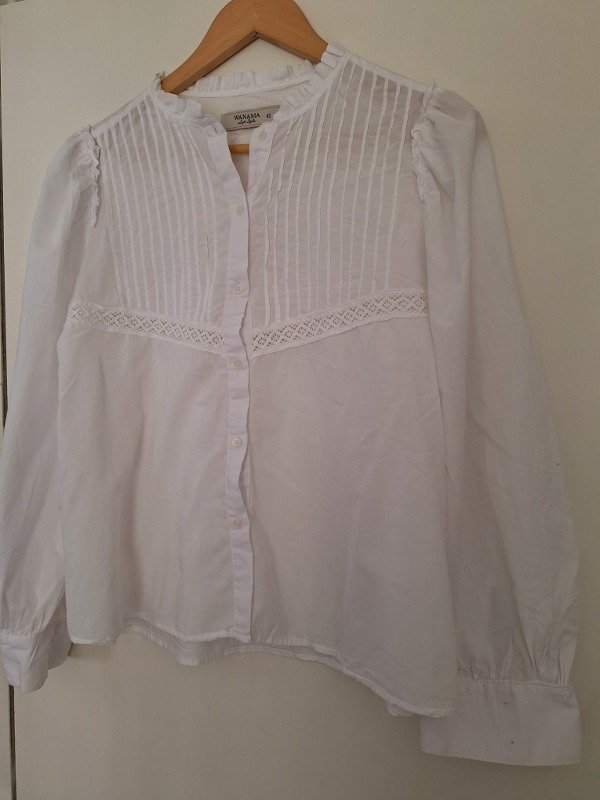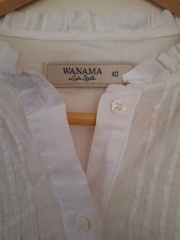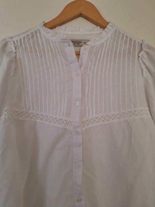 Camisa marca Wanama en color blanco, con detalle de tablitas en el frente