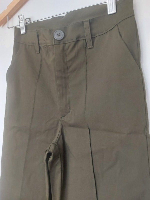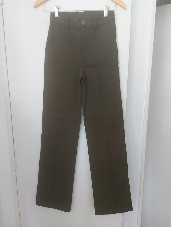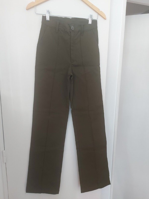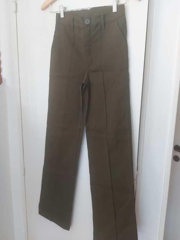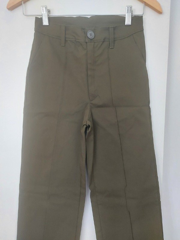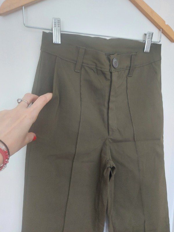 Pantalon de vestir, en color verde oscuro, con spandex. Modelo recto, con bolsillos laterales
