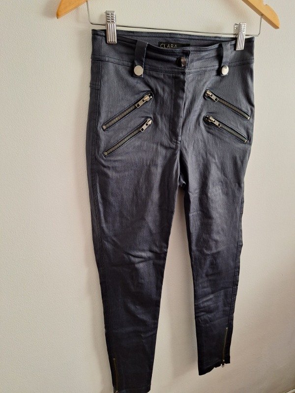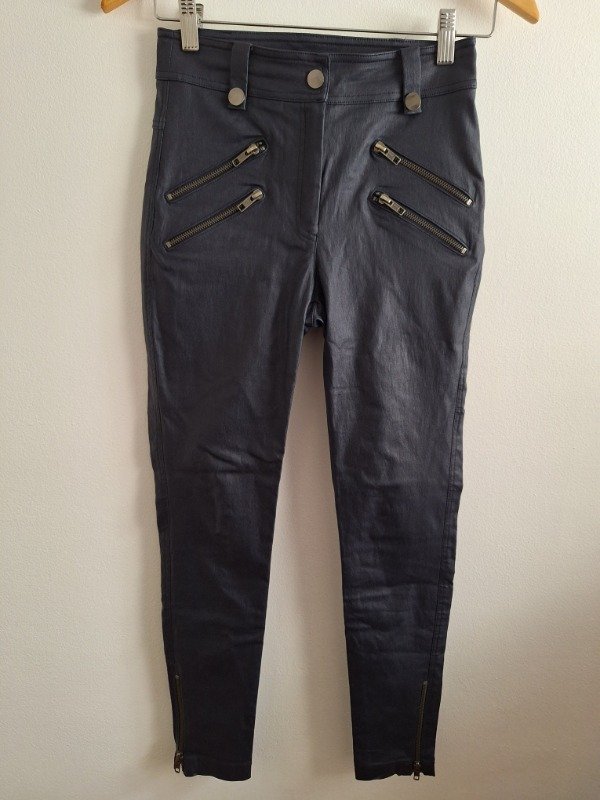 Pantalon engomado marca Clara Ibauguren pantalon corte jean muy canchero color azul con cierres delanteros
