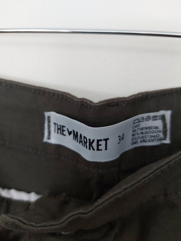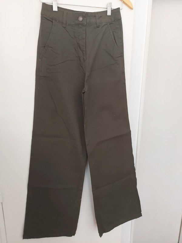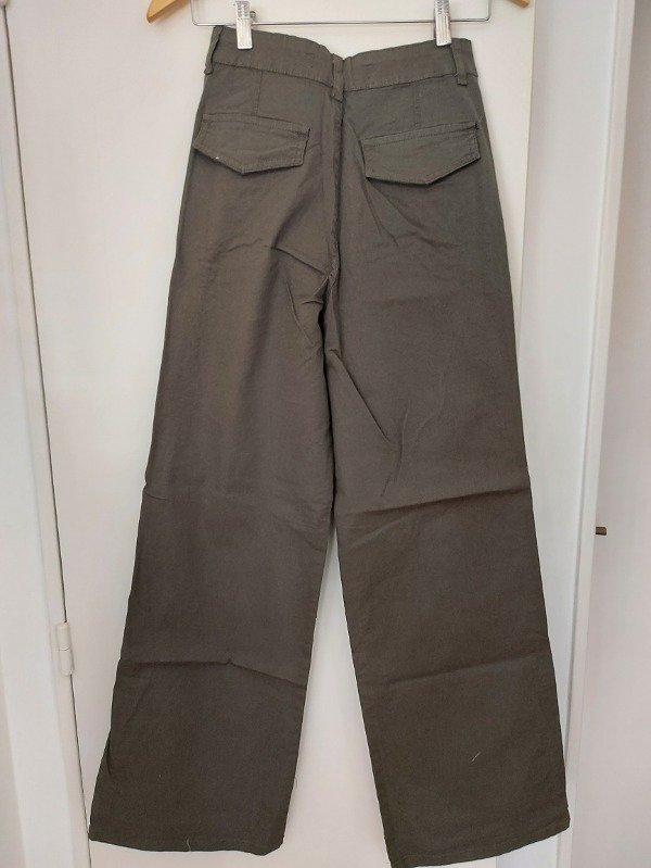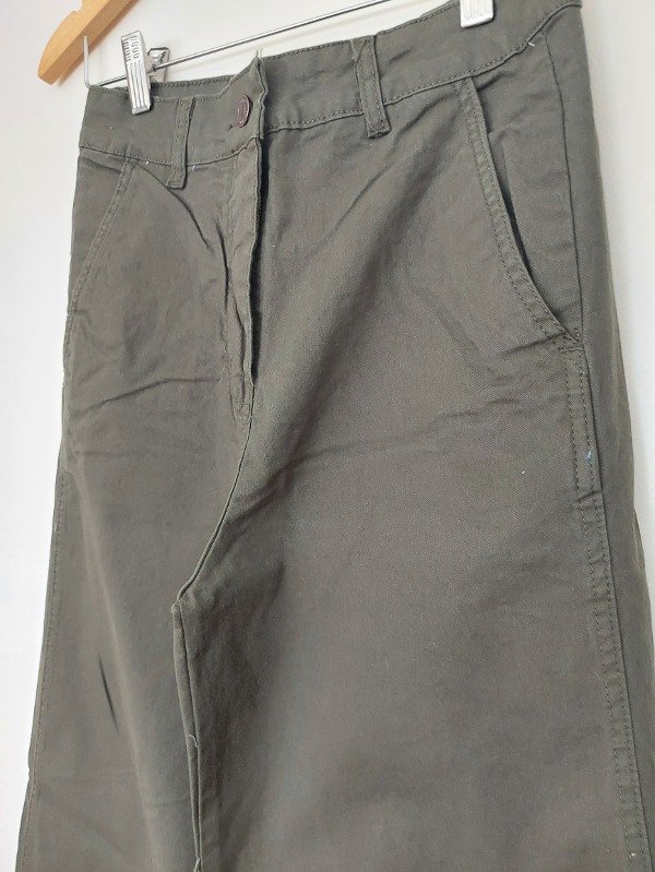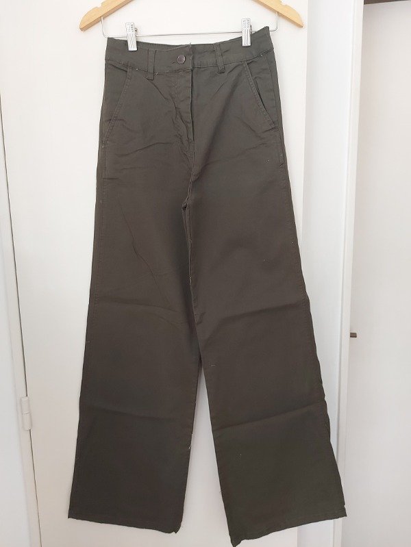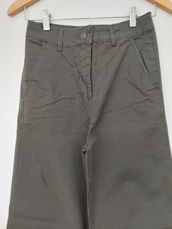 Pantalon amplio, marca The Market, tiro alto, en color verde, modelo recto con bolsillos laterales. 100% algodón