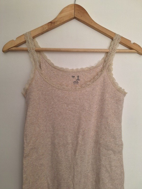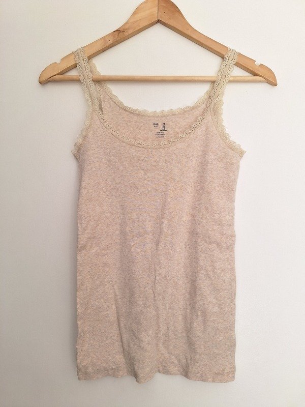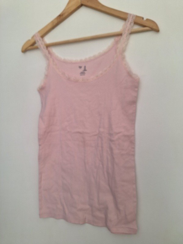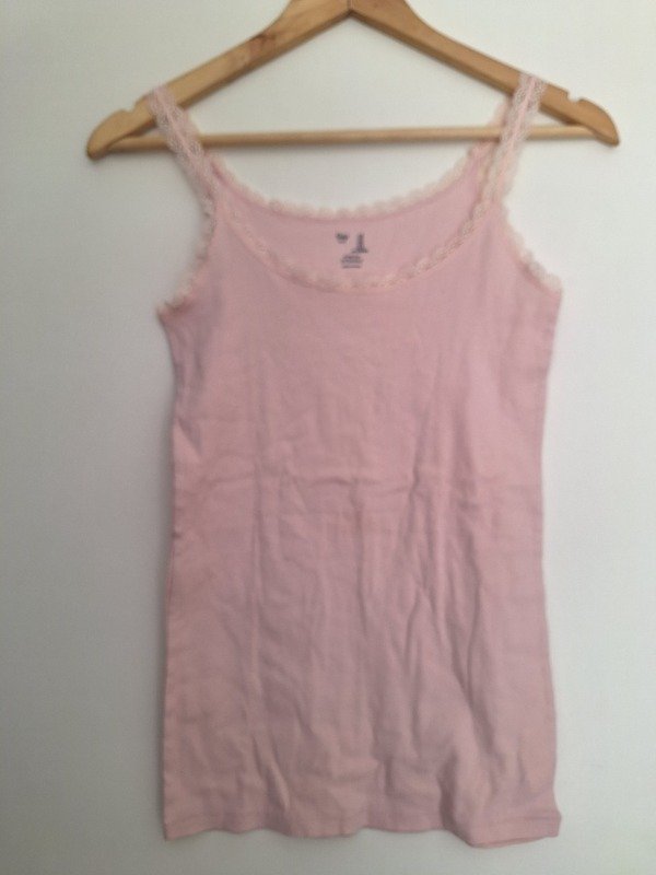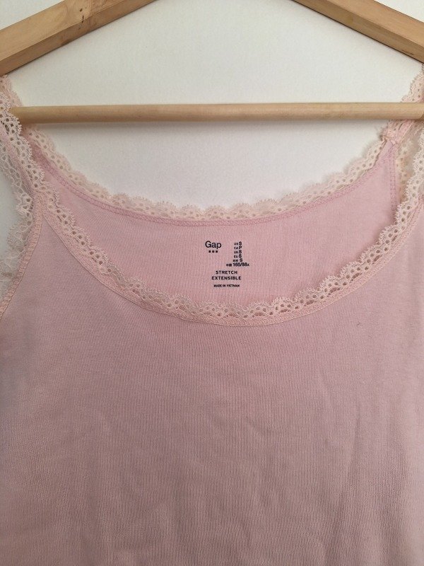 Musculosa marca Gap en tono natural y otra en tono rosa, con spandex. Ambas poseen detalle de puntillas en escote y breteles. $7500 CADA UNA
