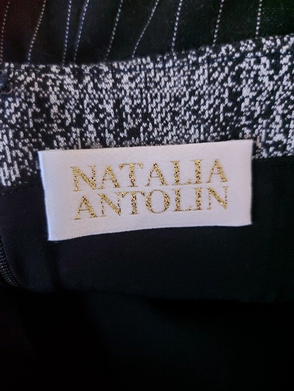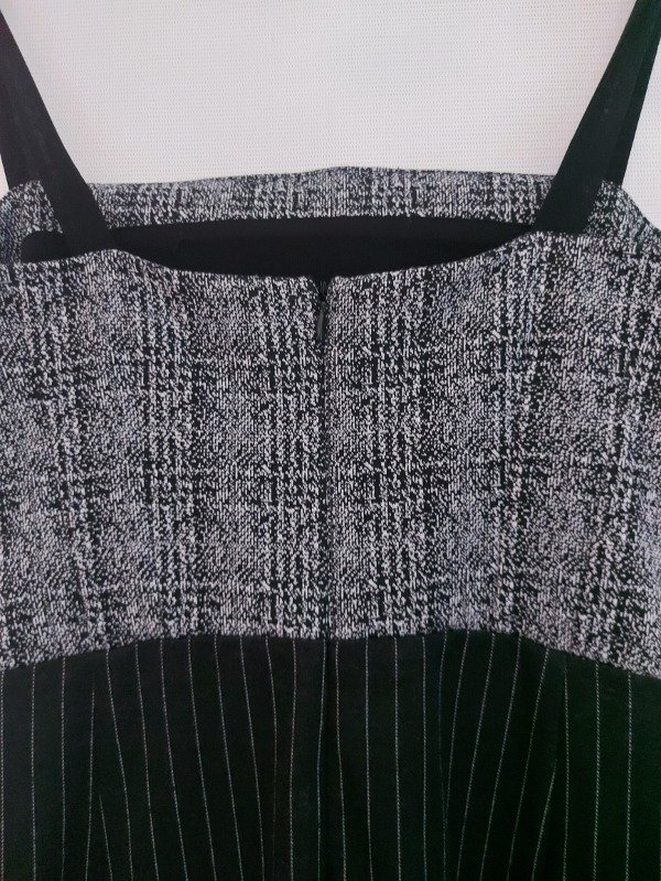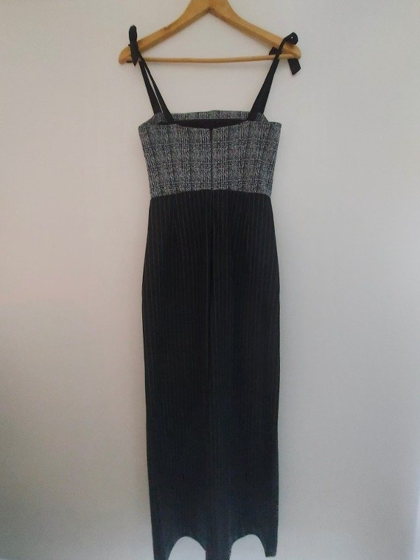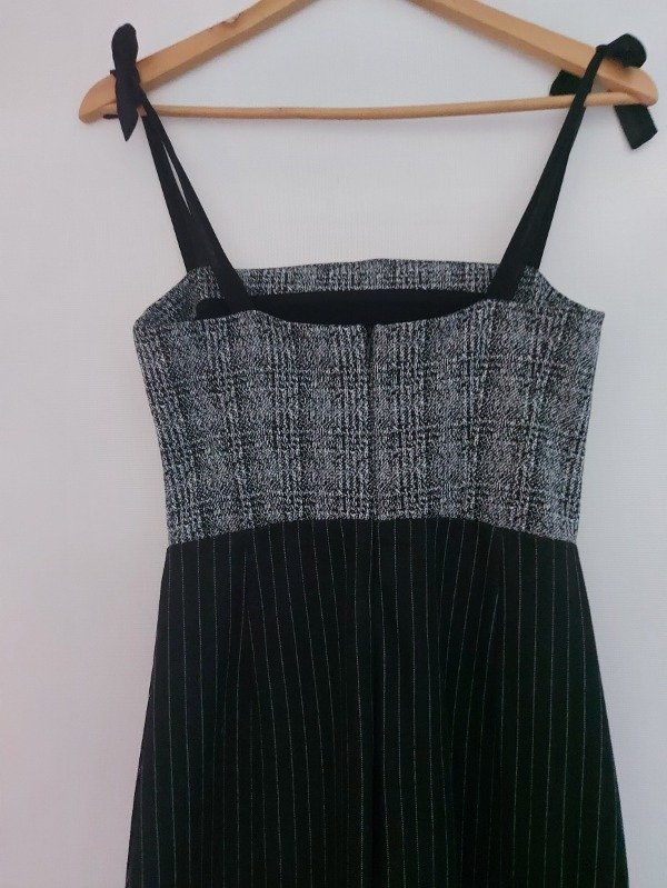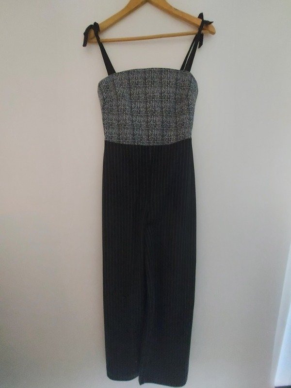 Jumsuits grueso de vestir, marca Natalia Antolin, en color negro con rayas finas en blanco. Modelo recto . Espectacular