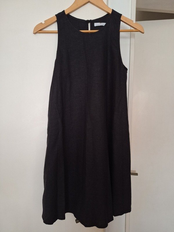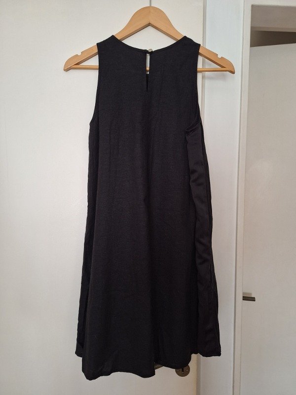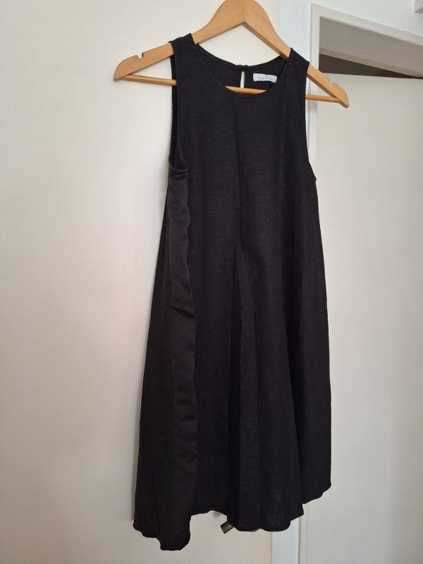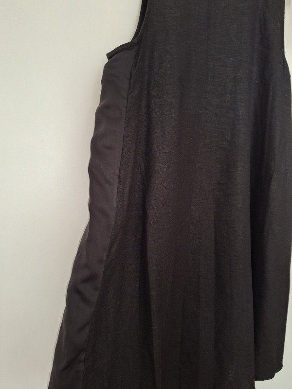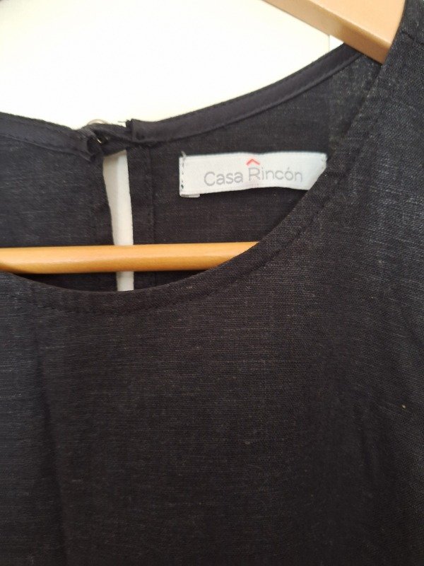 Vestido marca Casa Rincon, con lino, en color negro.
